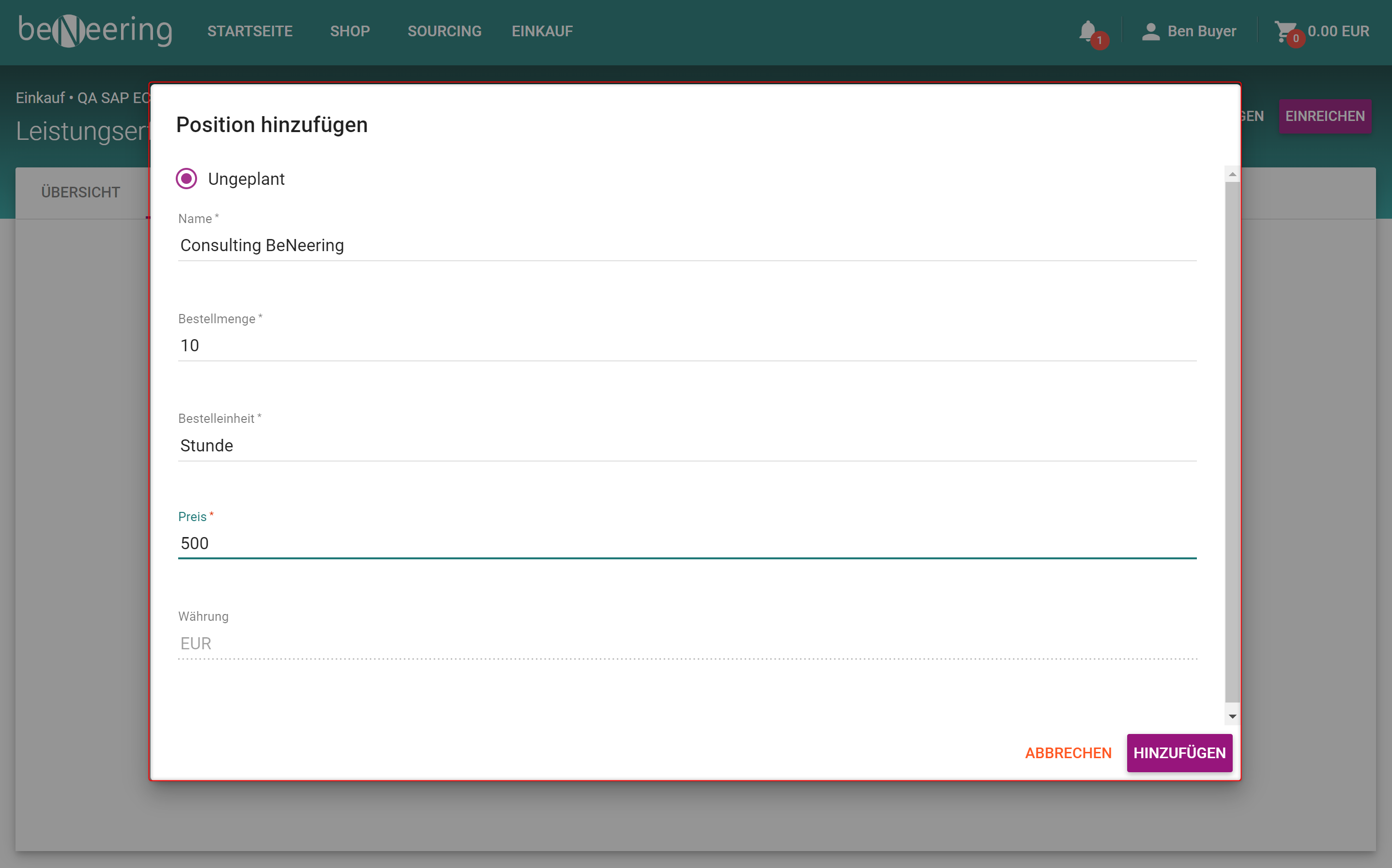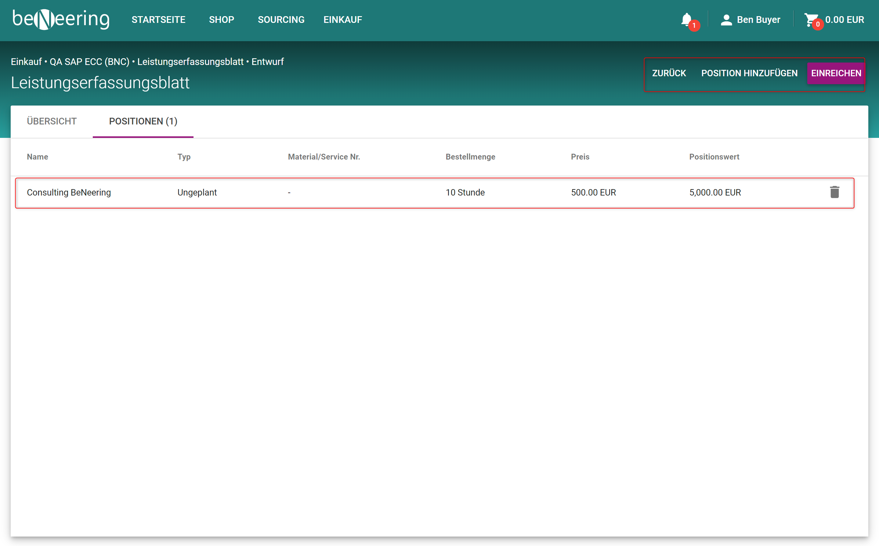 POSITION HINZUFÜGEN | Position hinzufügen |