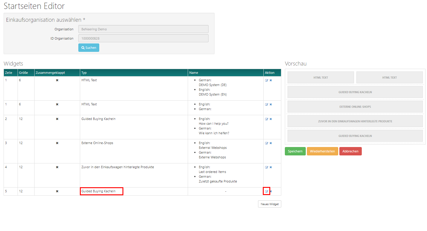 Um das Guided Buying auf der Startseite einzurichten, gehen Sie zu CCS → Customizing → CSE Start Page Editor.