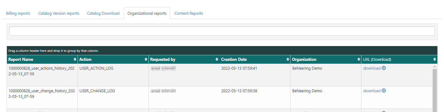 Sowohl das Benutzeraktionsprotokoll als auch das Benutzeränderungsprotokoll sind im Downloadcenter zu finden, sobald sie angefordert werden.
