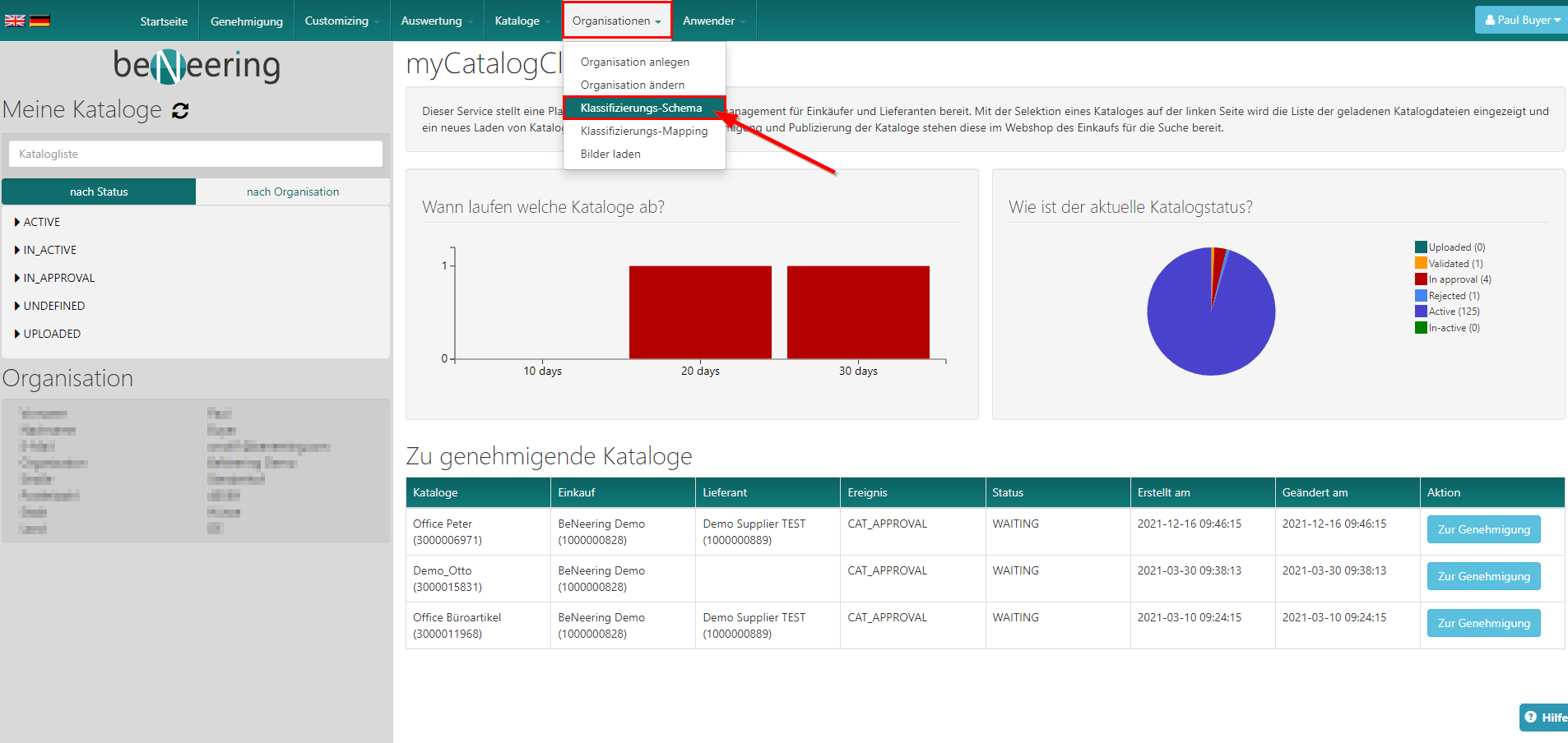 Navigieren Sie in der oberen Leiste zum Abschnitt Organisation
