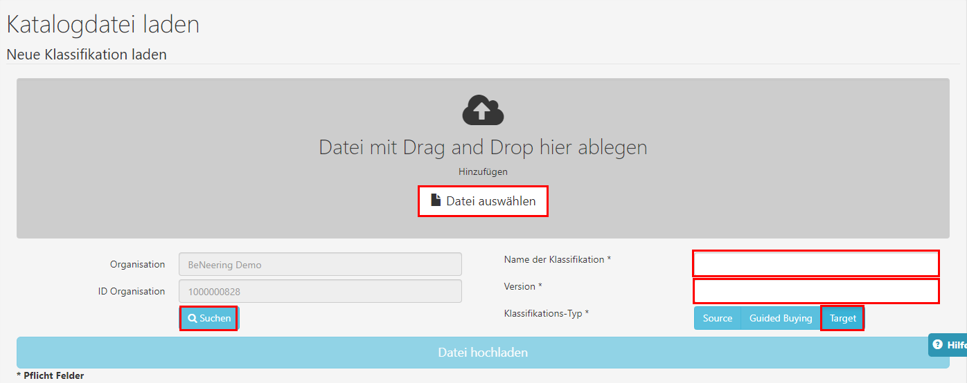 Klicken Sie auf Datei hochladen und warten Sie, bis die Datei validiert wurde