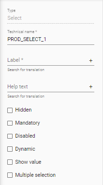 - Type: The Type Field is linking to the Kind of Component that is being edited right now, in this case a Select-Component