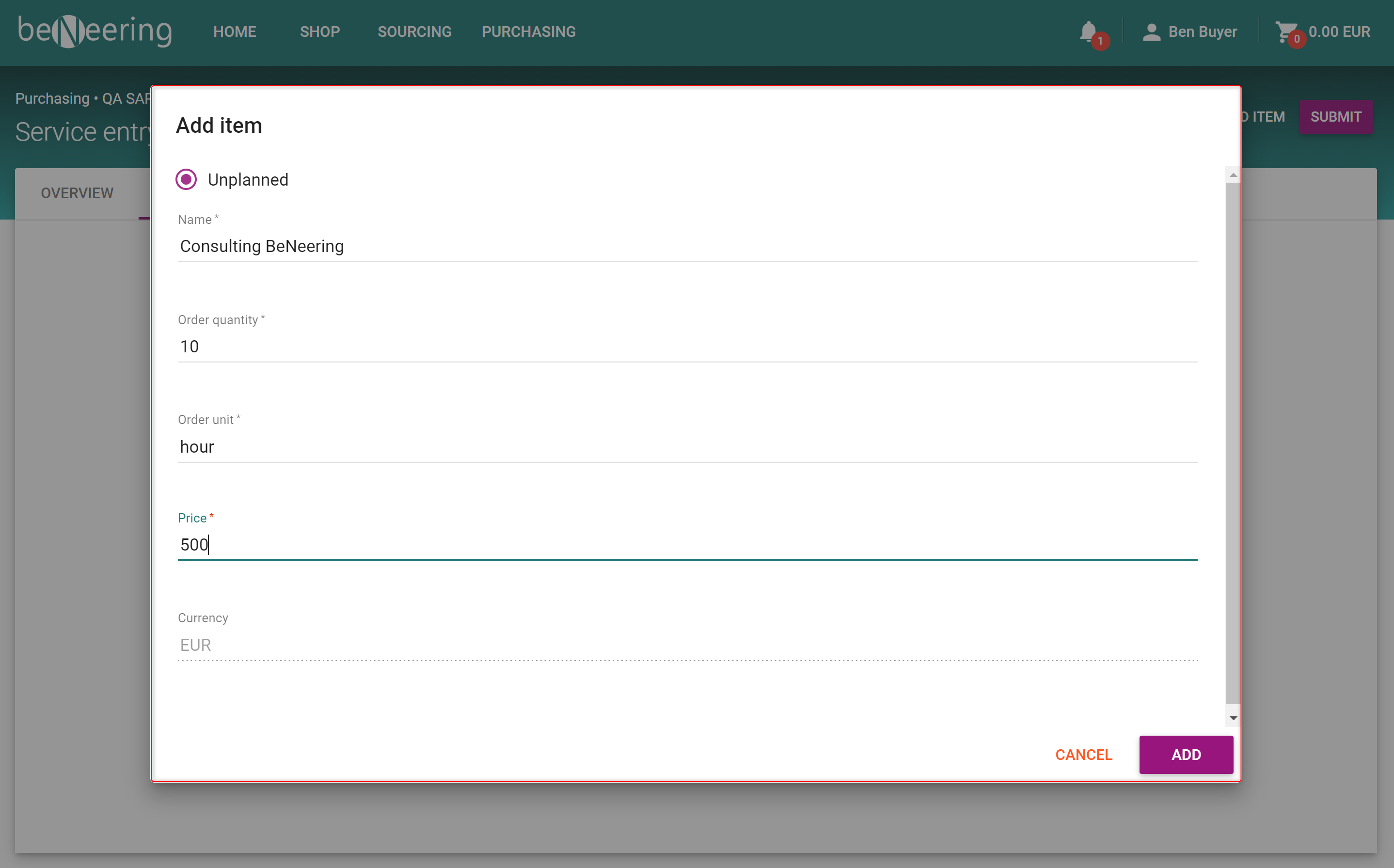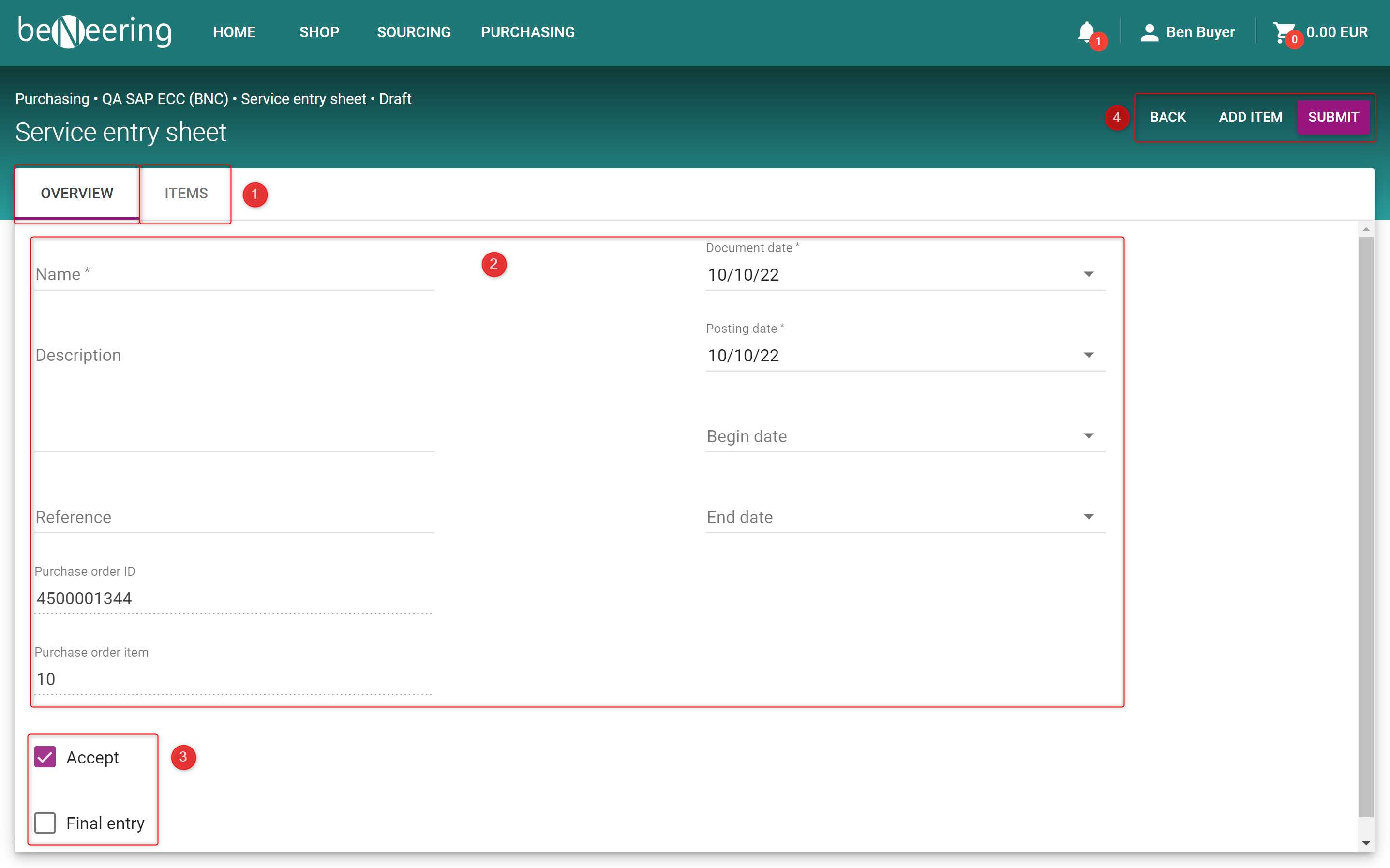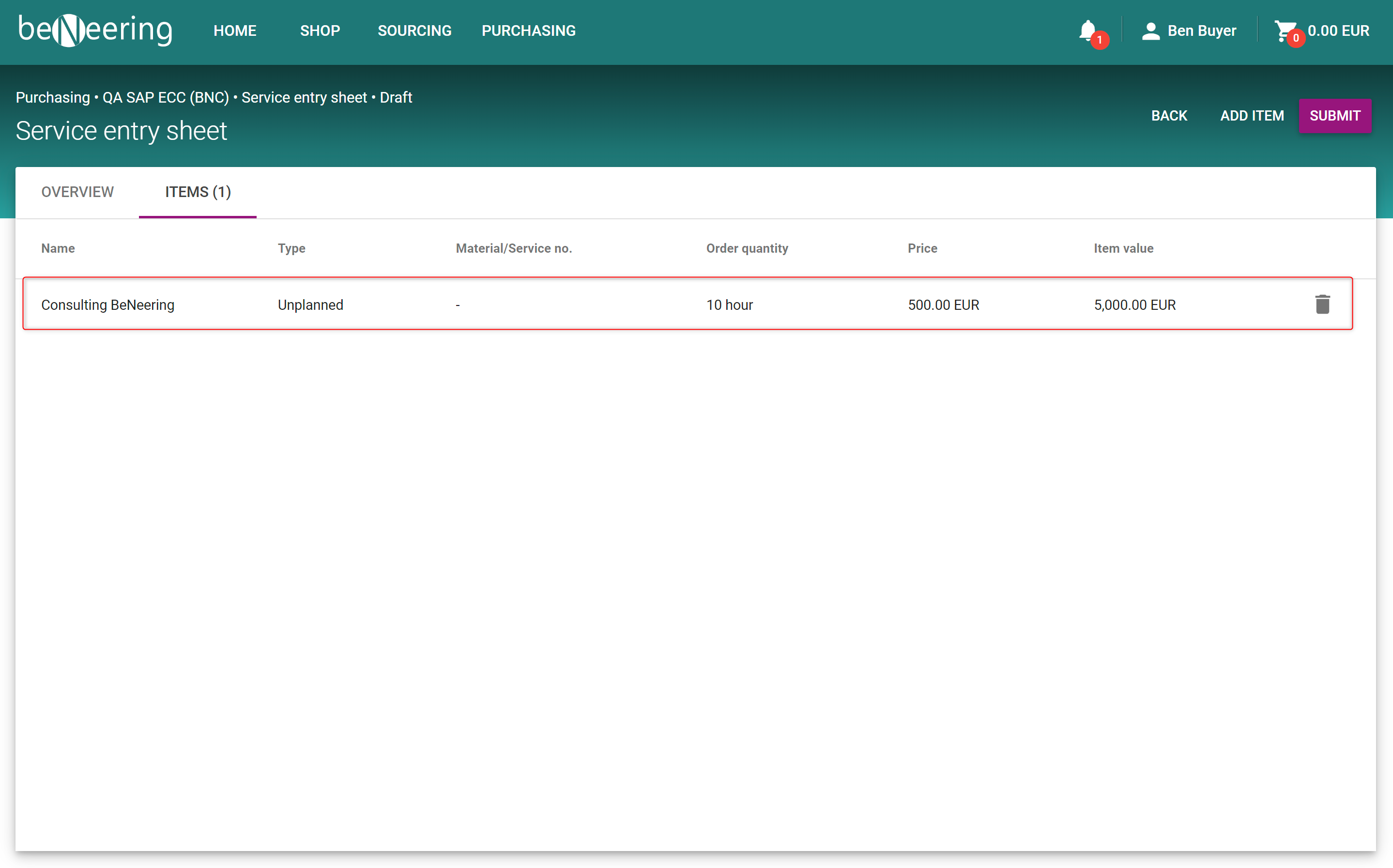 After that you can click on SUBMIT to create the Service Entry Sheet.