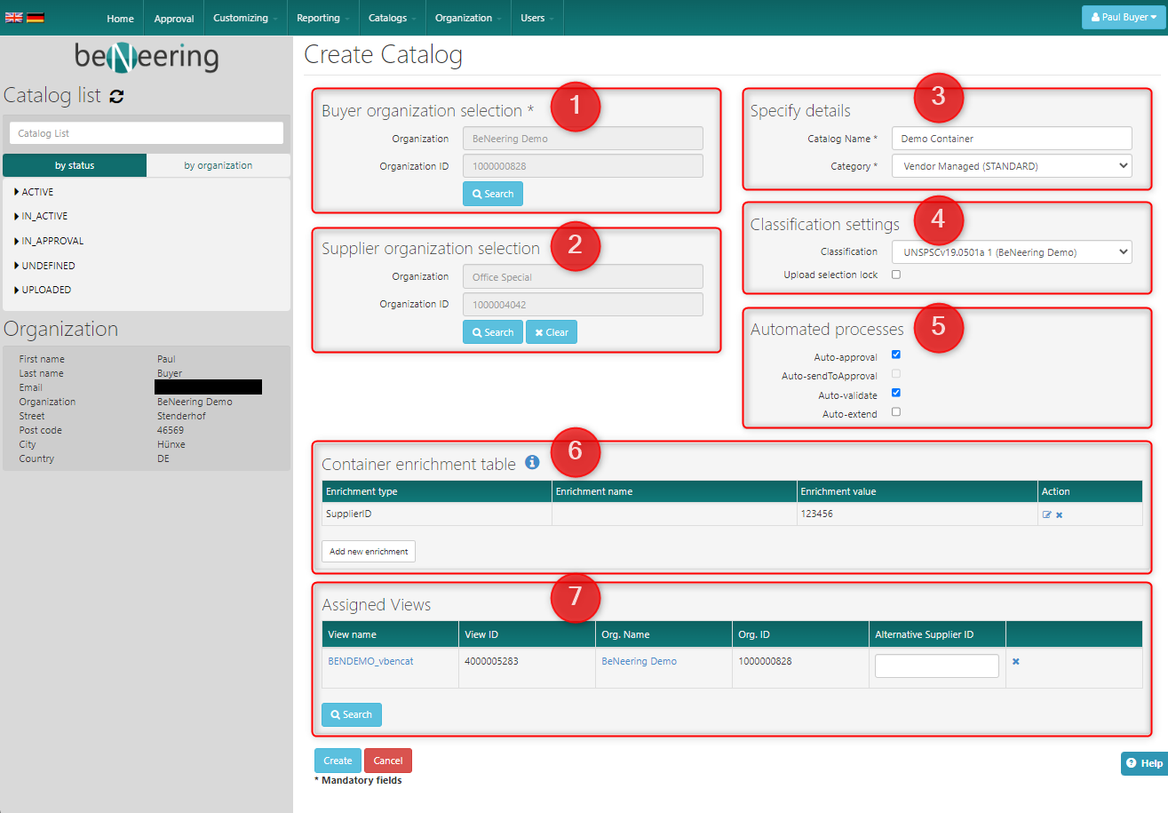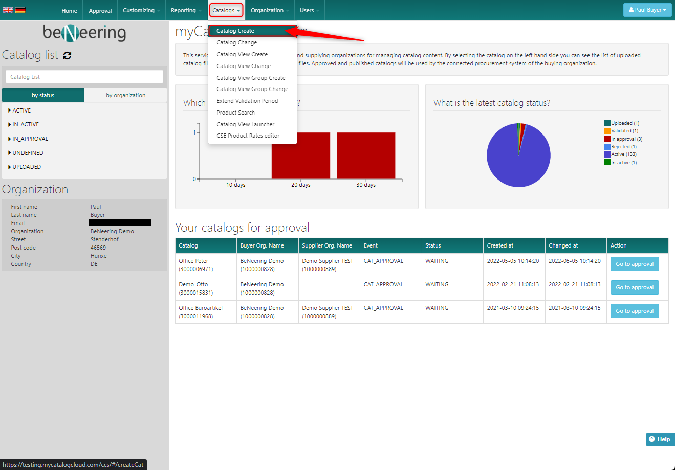 Click on "Catalogs" → "Catalog Create" to go to the creation screen