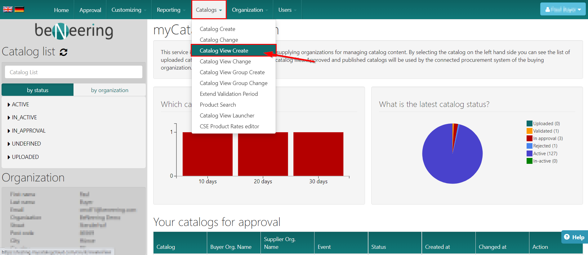 Select Catalogs → select one ore more catalogs which will be displayed in your view