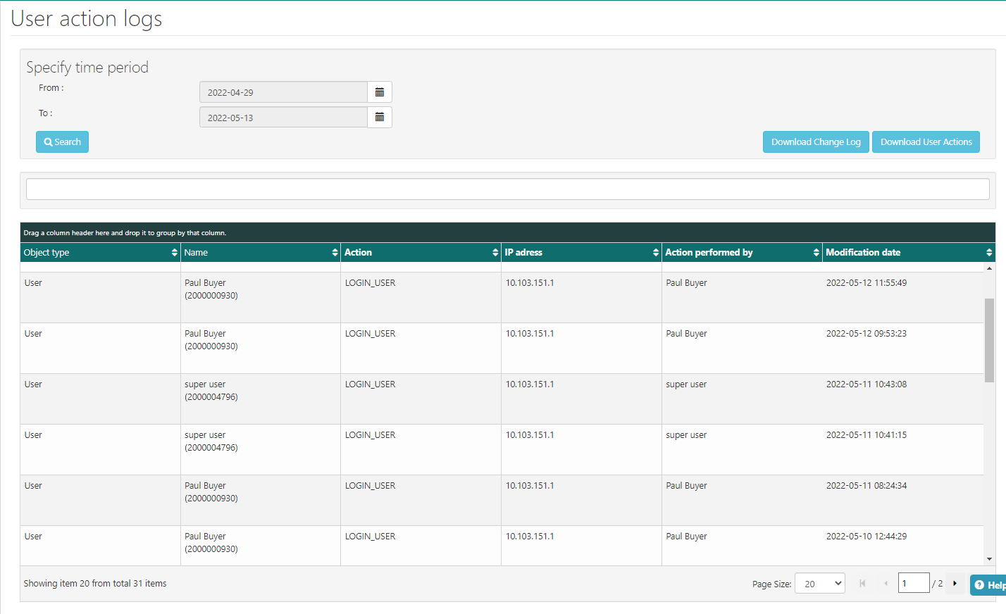 Both, User Action Log and User Change Log can be found in the Downloadcenter, once requested.