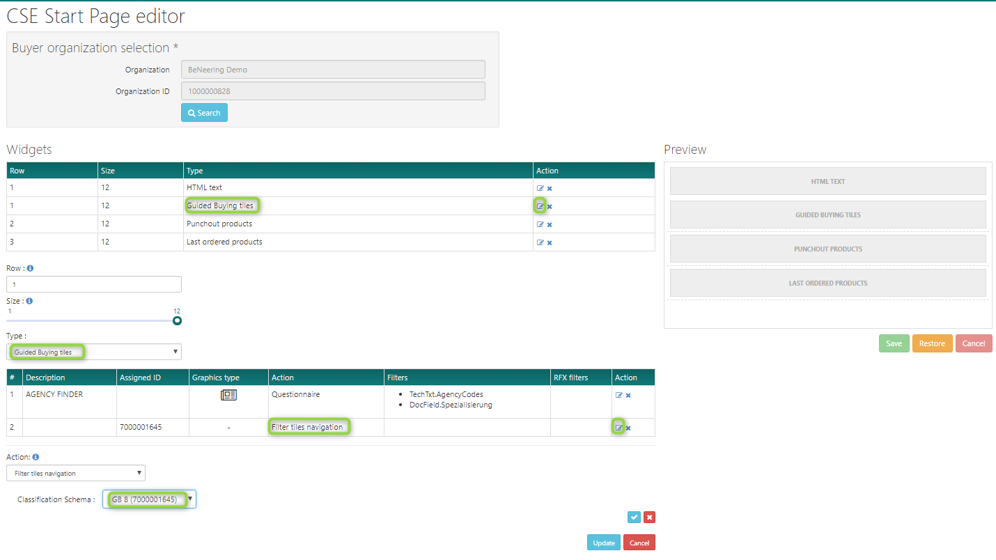 To setup the Guided Buying on the start page you have to go to CCS → Customizing → CSE Start Page Editor.